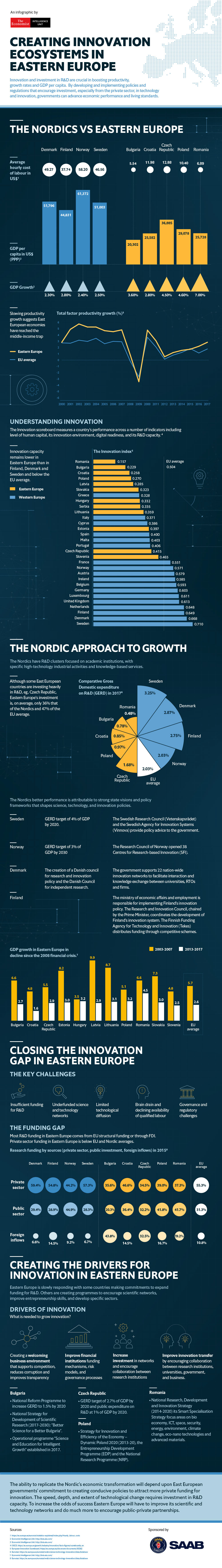 Exploring the future of innovation in eastern Europe. I worked closely with The EIU to develop a suite of summary visualisations of their data for the report, including a summary infographic for the