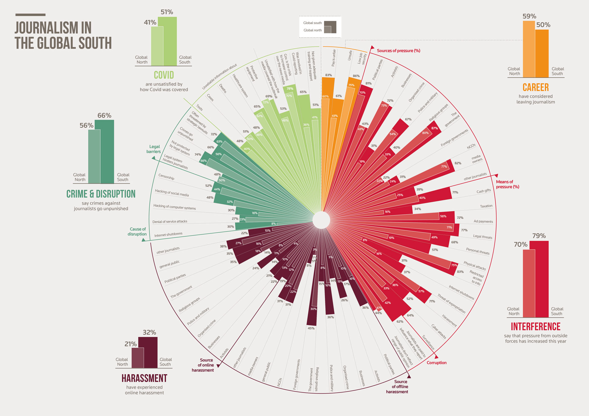 This series of visualisations focuses on the state of journalism in and from the Global South and illuminates how journalism cultures and practices differs from the Global North.