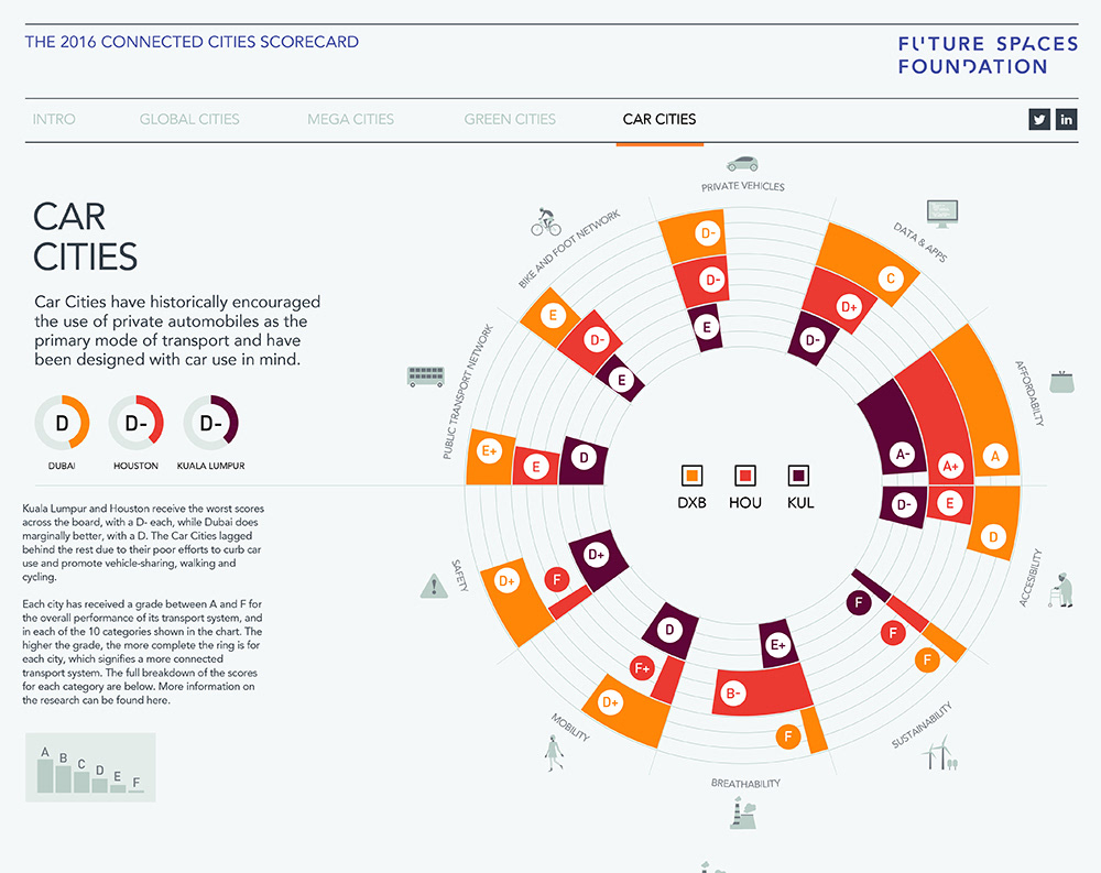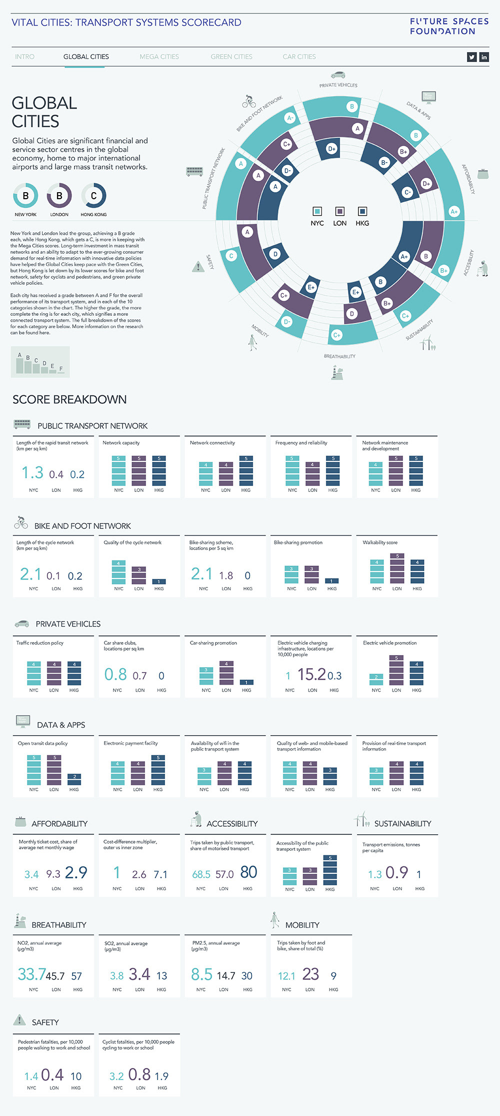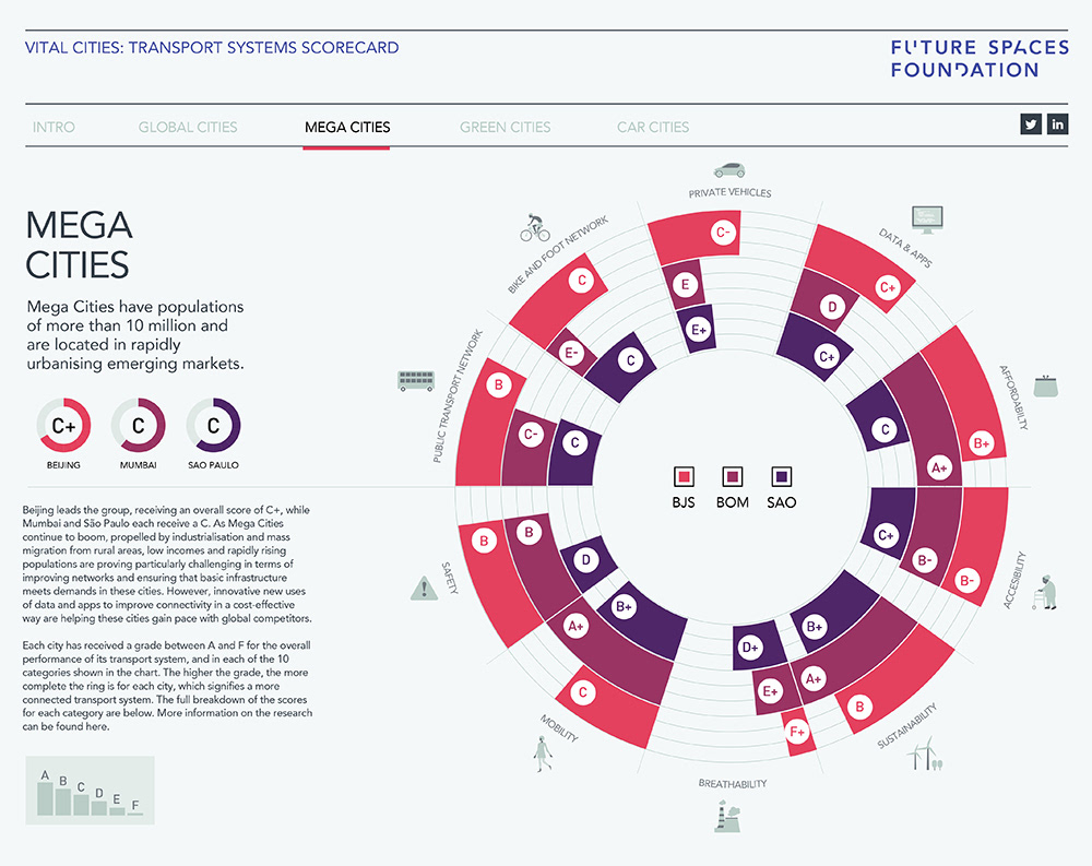 An interactive we designed and developed in Graphic Digital Agency for the Future Spaces Foundation, allowing an audience to explore the data on cities around the world from their Vital Cities report.